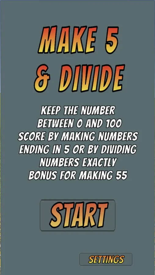 Keep the running total between 0 and 100. Score points by making numbers ending in 5 as well as by dividing the total and making a whole number.