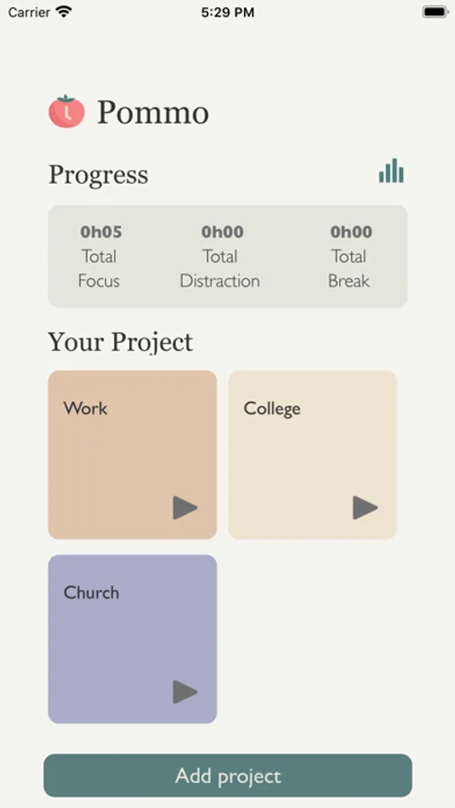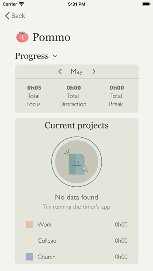 • Organize your focus time in several specific projects according to the activities you perform. Be it your job, studies or domestic activities.