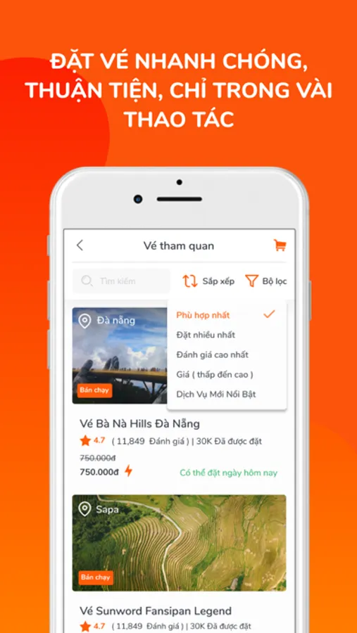 - Đặt vé máy bay, xe khách, xe lửa, khách sạn, tour du lịch, vé thăm quan nhanh chóng, thuận tiện cho cá nhân, gia đình, tour, đoàn,… ngay trên di động.