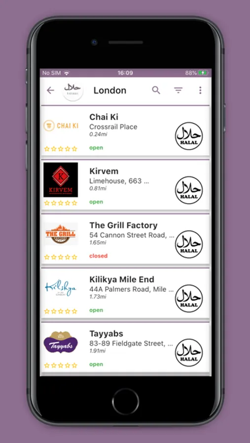 You also have the ability to sort the restaurants by their distance relative to a chosen location, so you can plan any trips ahead of time or simply find the closest halal eatery to your current location.