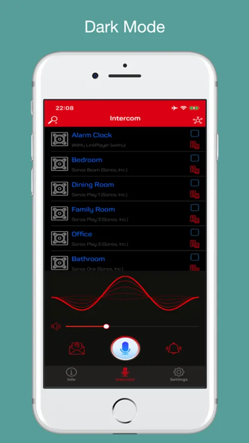 Speaking into iPhone / iPad microphone on SonosTalk, SonosTalk can play voice through WiFi speakers like a voice intercom.