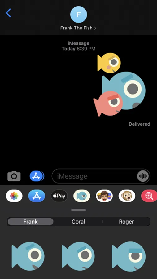 Meet Frank, Coral, and Roger! A fun fish sticker pack ready to react to any iMessage text!