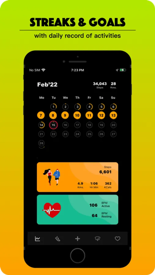 The app also features a walk analytics section that provides detailed graphical analysis of your walking duration, step count, distance covered, floors climbed, and active calories burnt. You can track your resting heart rate or BPM, active heart rate or BPM, and get weekly and monthly trends of your BPM. FitAnalytica even allows you to share your step count directly on social media platforms, with the option to choose background images and placement of the step count.