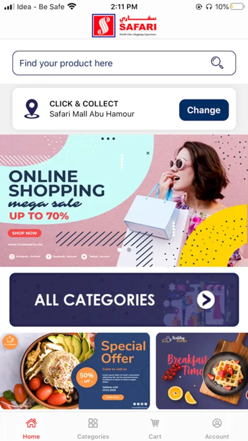 The Safari Shopping app makes your life easier. Shop your groceries, home appliances, electronics and more. You can find out the latest Promotions and Deals in our stores (Safari Hypermarket, Safari Shopping complex, Safari mall and safari Webstore), and enjoy world class shopping experience.
