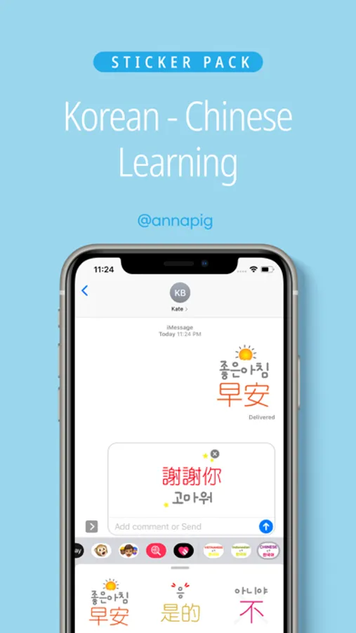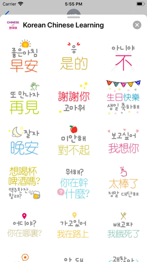 This sticker pack includes 24 expressions most commonly used words in daily life.