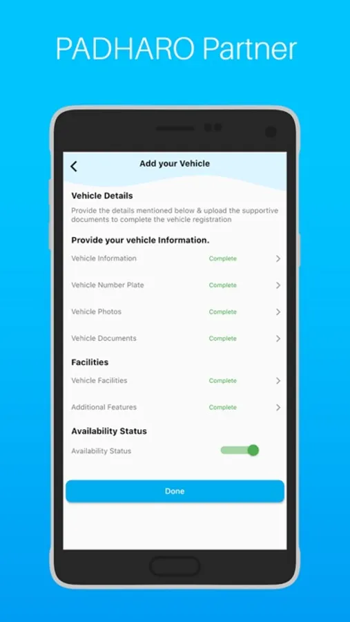 With Padharo Vendor APP, you can manage the availability of your taxi,bikes, and all other vehicles as well as drivers. Only a partner can invite drivers to their fleet using “Add Driver” feature. Adding crucial details in the app like Aadhar information, Police verification status, Driver photo, Pan Details and driving license details, ensures that the information management gets streamlined. This adds credibility to your customer’s confidence on you. Also, by adding pictures of every document ensures that no information gets missed out or misplaced. Keep all your documents at one place.