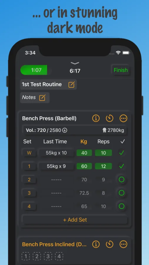 - Double set mode: Always keeps the set number even and the rest time only fires every second set! Great for single-side exercises like one-arm rows, cable shoulder raises etc. or for drop sets.