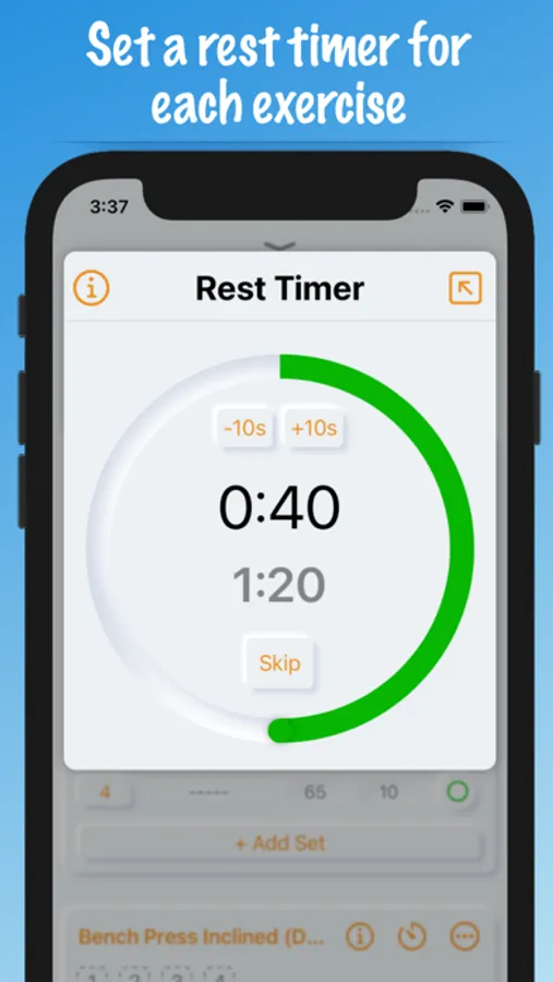 - Auto-adjusting rest timer: change the rest timer duration on the go for each exercise individually. Or set a fixed rest time.
