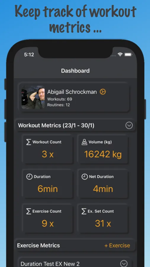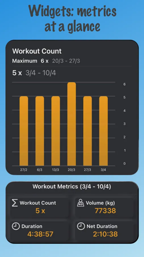 - Metrics bar: Easily compare last time's metrics or your personal records with current weights, reps, duration etc.