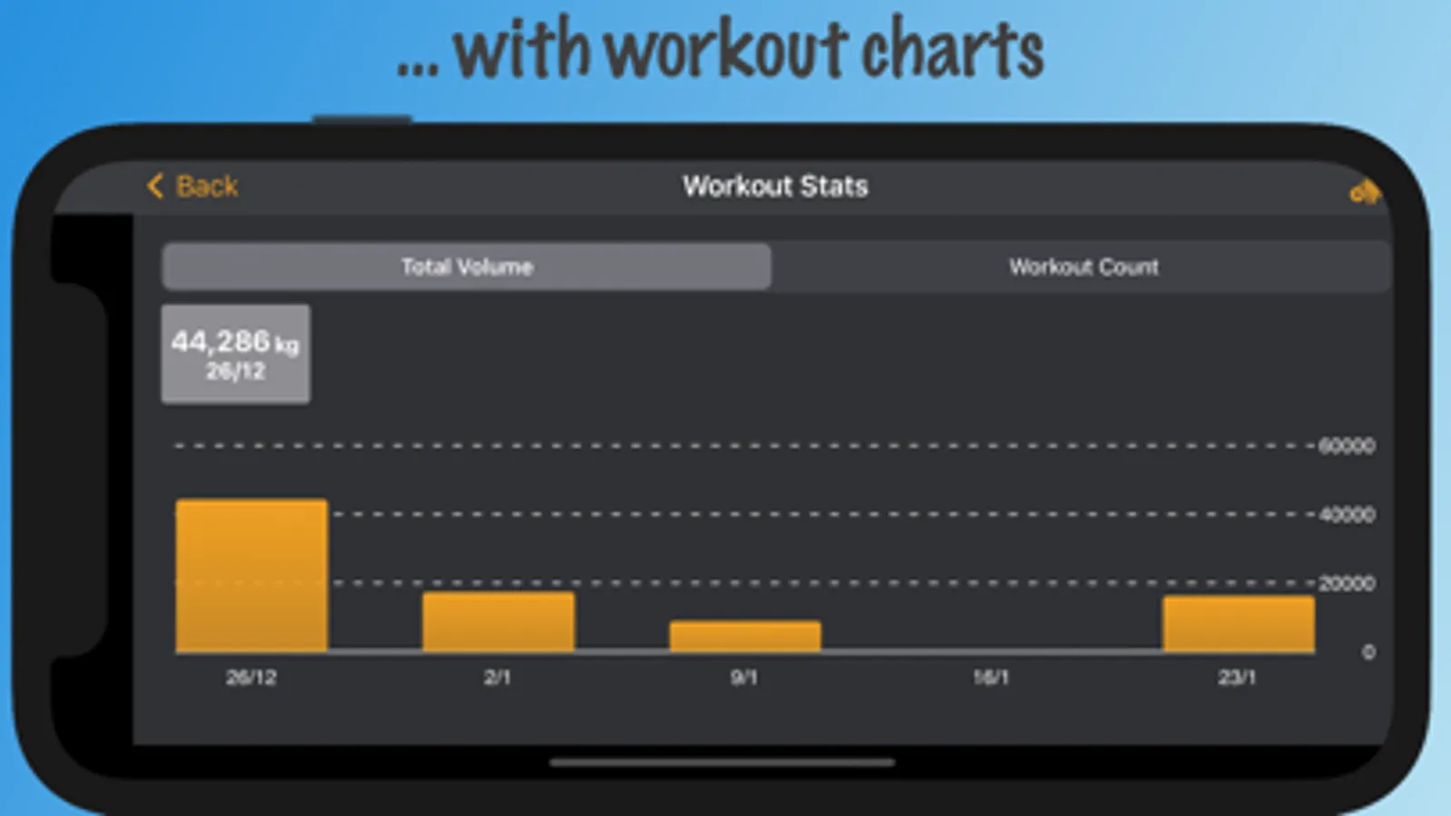 - Charts: Visually analyse your workout activity and follow your progress for specific exercises