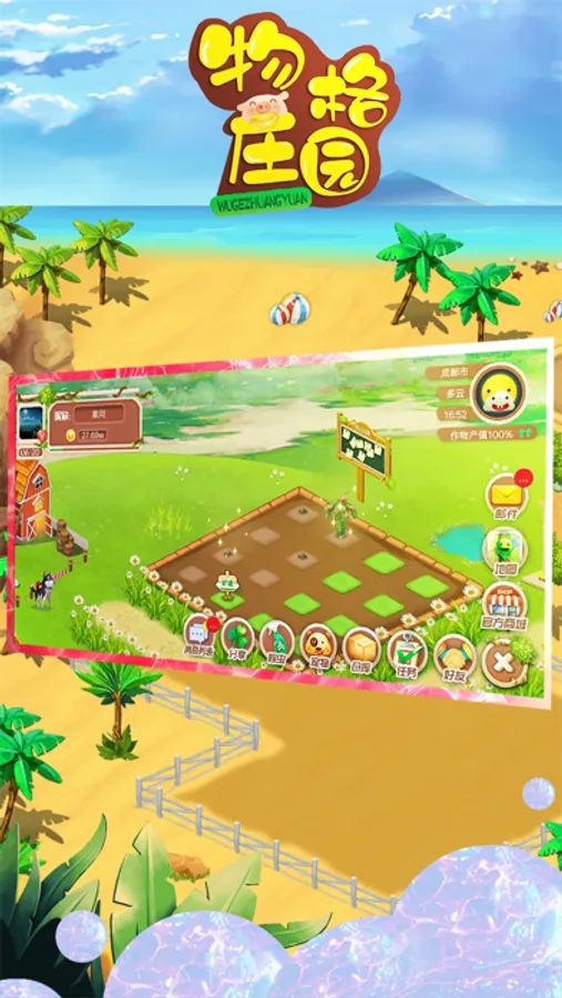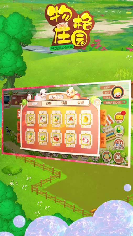 《物格庄园》是首款物联网+电商游戏,游戏以土地为主要财富,真正意义上实现线上到线下的一款游戏,以模拟经营的角度,开创性的结合了虚实交互的概念,以种植饲养线上商家的果实畜牧,来换取真实的优惠效益。游戏以虚拟现实地图为背景,结合全国所有城市区县,将各自商家的店铺,真实映射到游戏的地图中,玩家可前往不同的城市查看该城市的商家以及产品,高度自由的选择做不同的商家任务,来获取兑换不同的商家优惠。在这里,你可以随处见闻各方特色,入一城,领不同商情;选一市,阅芸芸商道。