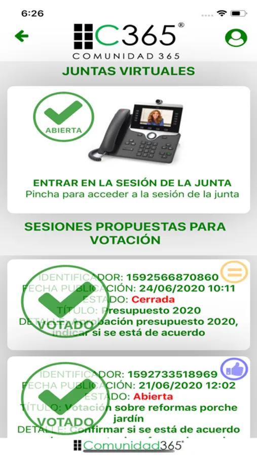 4.- Únete a las juntas de forma virtual para seguir, opinar y decidir sobre los puntos a tratar. Vota sobre cualquier punto de discusión abierto.