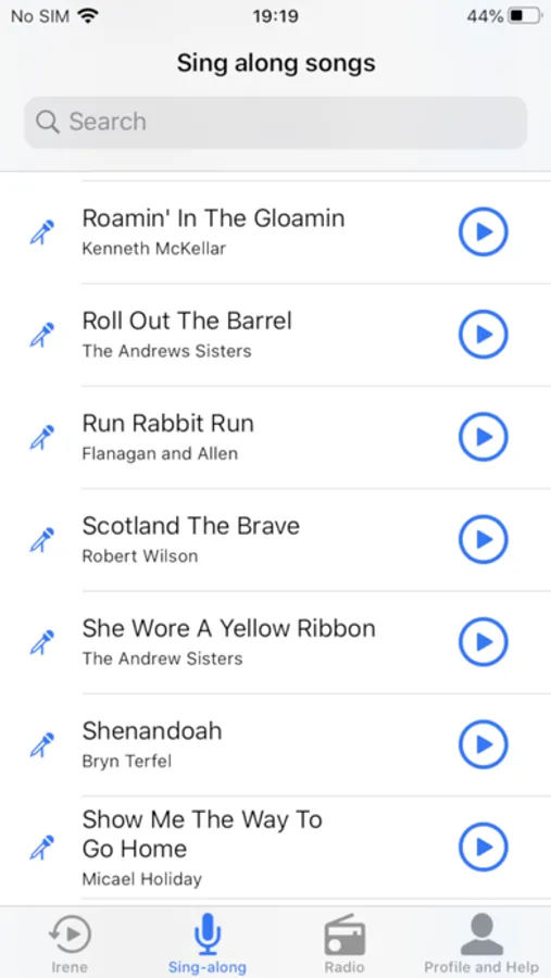 The app is automatically set up with a default Profile. After you download and confirm the subscription (there is a free trial period), you will see 20 different activity tiles with songs based on someone born in 1940. You can add as many Profiles as you wish in the Profile section.