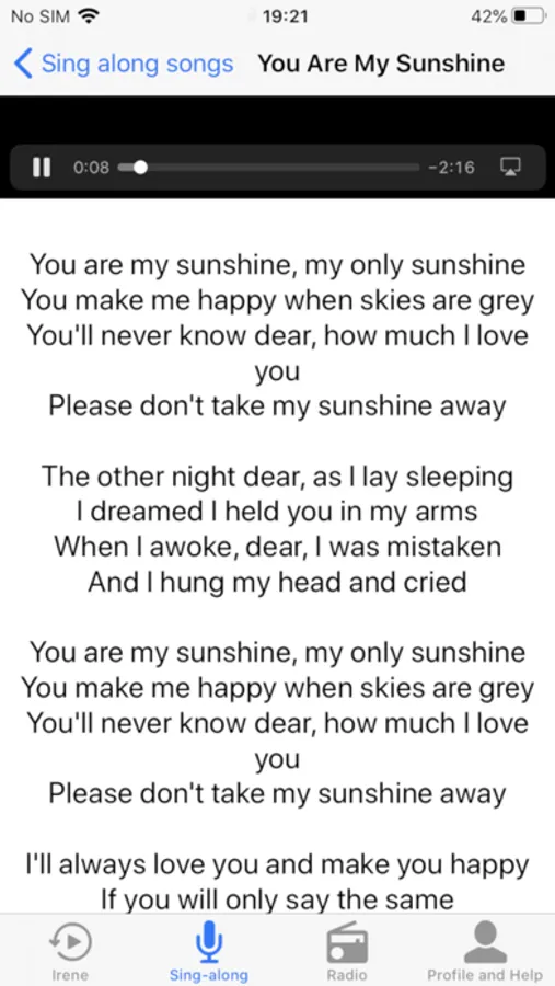You are ready to go! The app is fully customisable. You can change any of the songs from our database of 360 favourite hits. You can move, add, remove or rename activities, and you can customise tiles with your own pictures. The app also has some additional features that help improve mood to bring real moments of joy. There is a radio that plays the songs in the list, and a song-along function that displays the lyrics of over 60 songs.