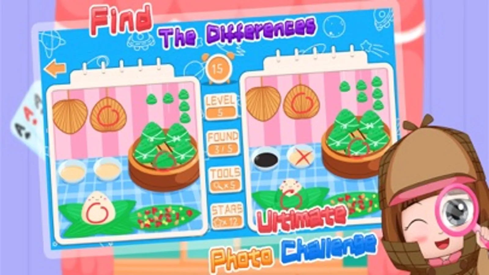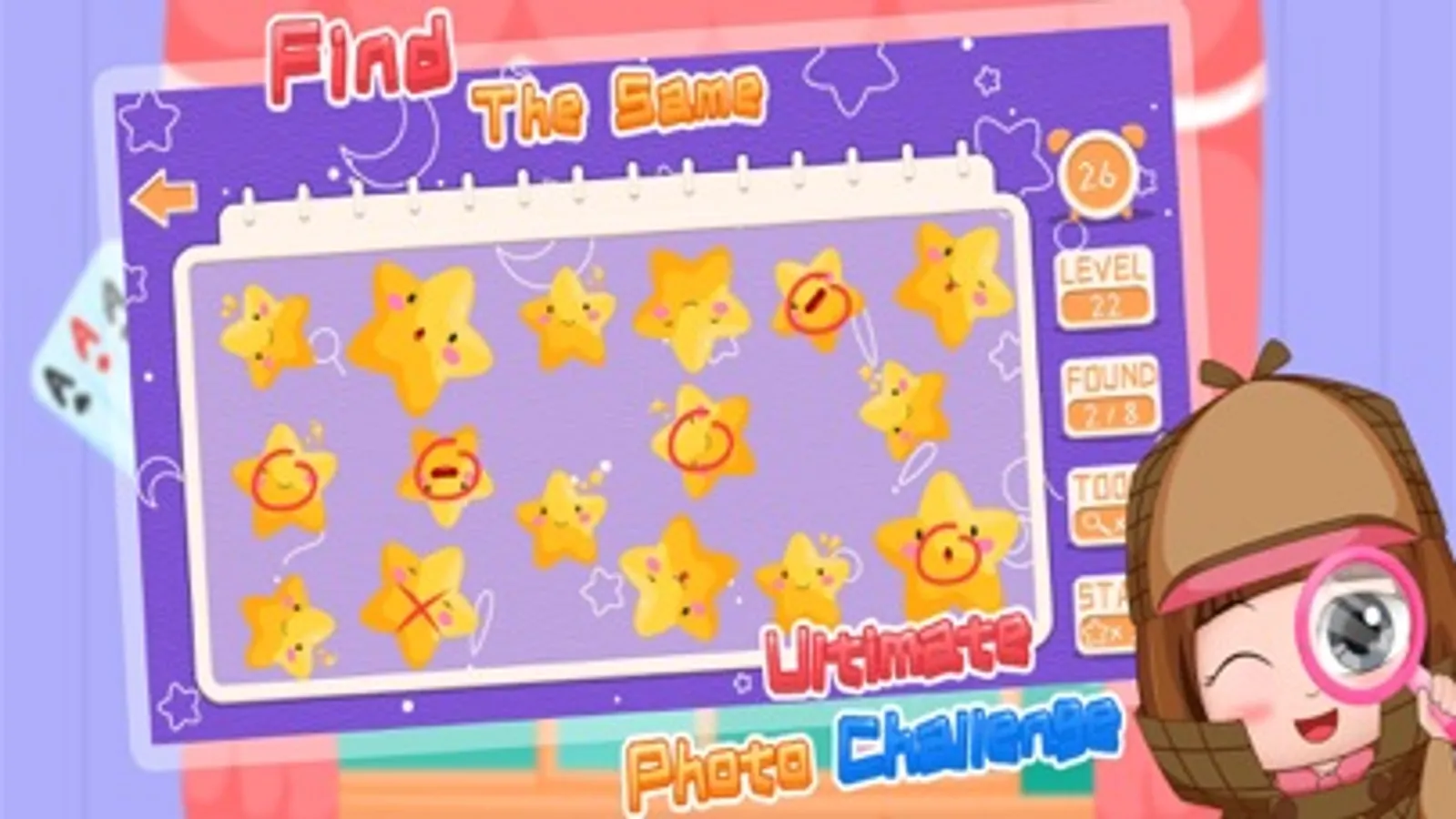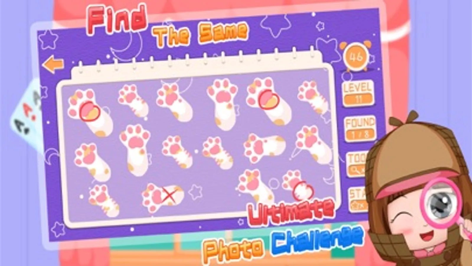 Time mode: It is a mixed game of Find differences, Find the same & Find the hidden things. Player should go throught as many level as possible within a limited time. Player will get a higher rank in the ranking board.