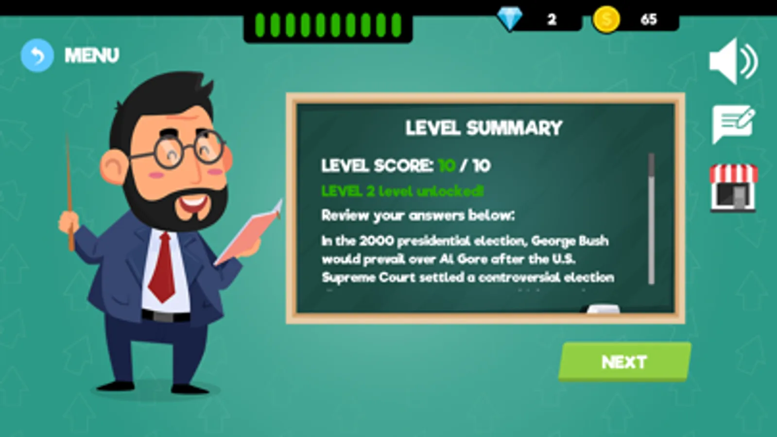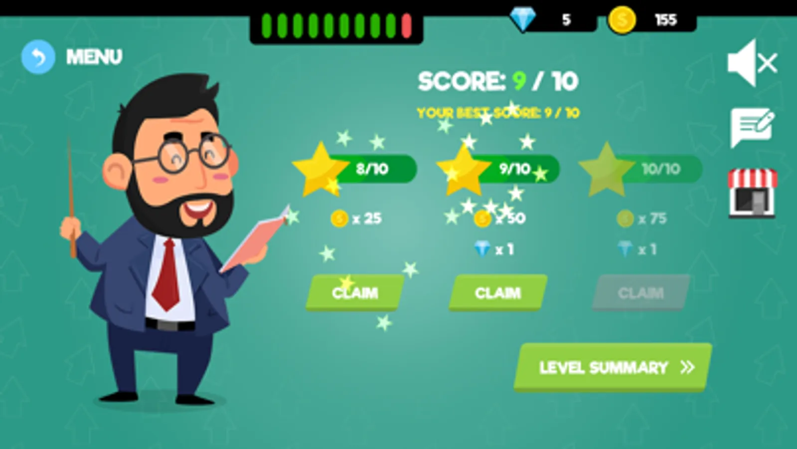 ◆ LEVEL SUMMARY ◆ where you can review your answers, reveal correct ones and learn more!