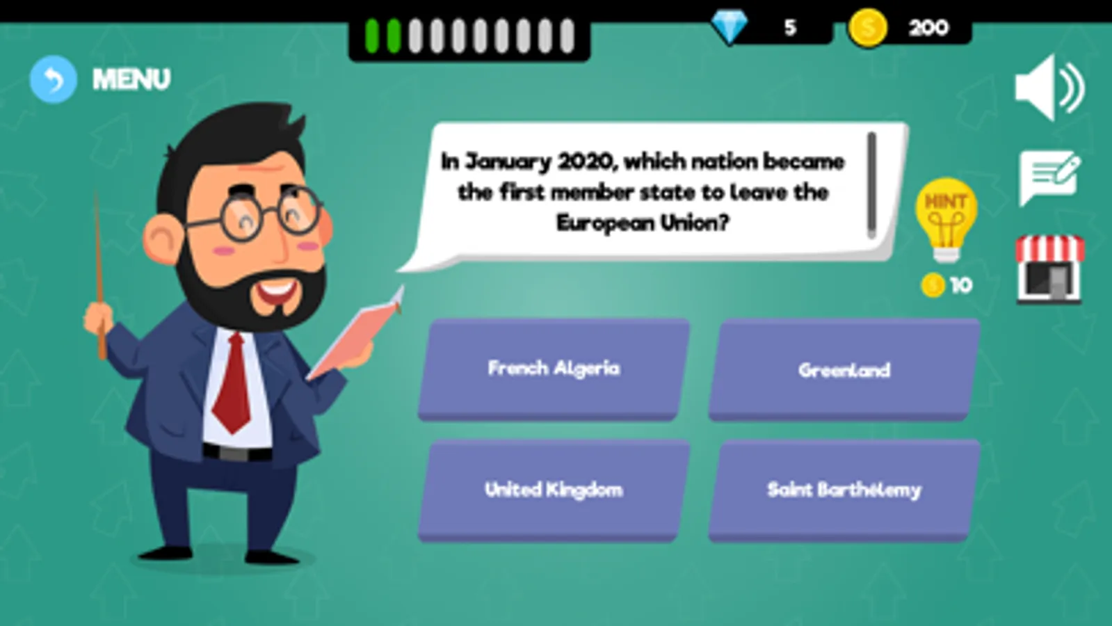 Install this awesome educational quiz app, read the questions about sports, geography, politics and everything else and try to answer them! How good is your knowledge?