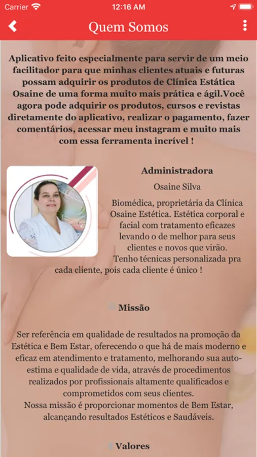 Aplicativo feito especialmente para servir de um meio facilitador para que minhas clientes atuais e futuras possam adquirir os produtos de Clínica Estática Osaine de uma forma muito mais prática e ágil.
