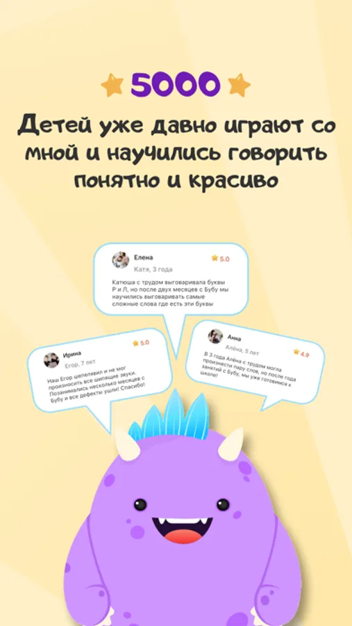 Монстрик Бубу станет верным другом вашему ребёнку, а весёлые и увлекательные игры помогут развить речь, расширить словарный запас и активизировать все полученные навыки.