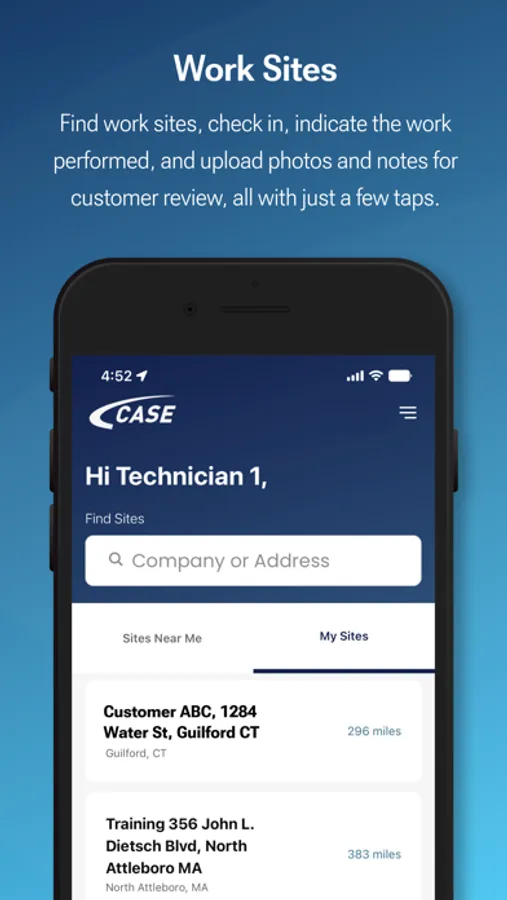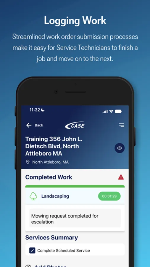 Are you performing services for CASE Facility Management Solutions (CASE FMS)? Use our app to streamline logging your work. The CASE FMS app allows you to quickly select your site, review site details and imagery (when available), and log your work - including photos - with just a few taps.