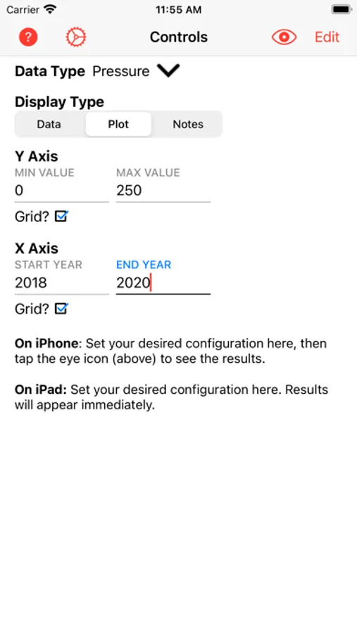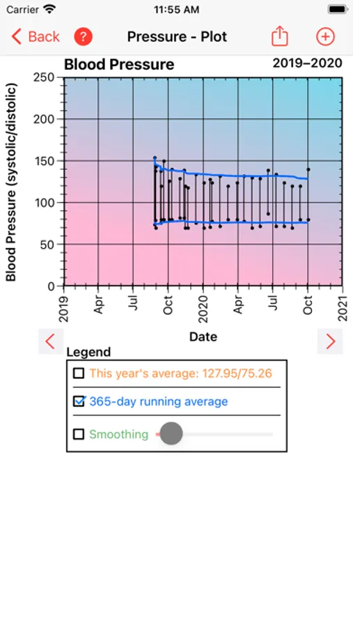 You can store as many different types of data as you wish, and customize the graph for each. You can add notes to the data, so that you can associate events in your life with events in the data record. (Did you pig-out on dessert last night? Maybe that's why your weight is up.)