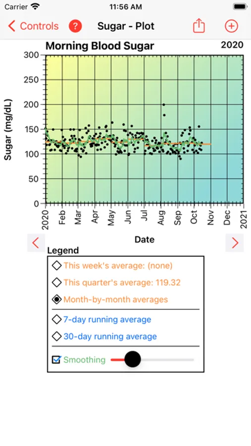 Morning Sugar is an application that records your data and displays it. And it can show you more than just the individual data points; it will calculate averages, display running averages (i.e., showing trends), and smooth the data to give you a better perspective of what's going on in your body.