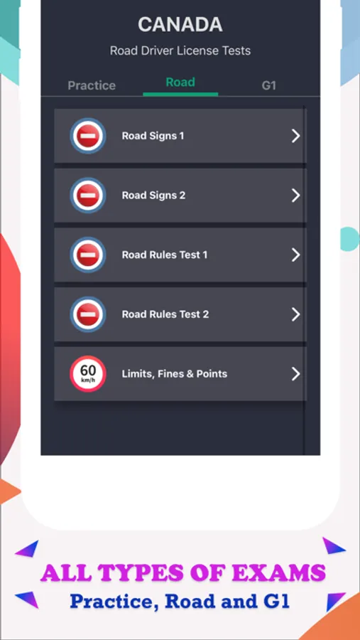 • The realistic G1 Exams is as close as it gets to the actual G1 driver's test experience. It mimics the experience of a real G1 test.