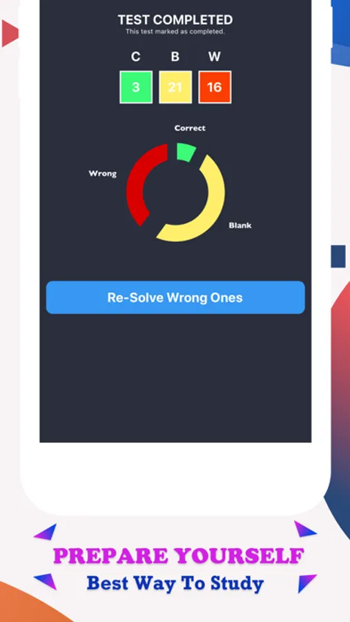 • Re-Solve is a new type of test that's automatically made up of your missed questions from all your practice tests. You can go back and review the questions that you got wrong.