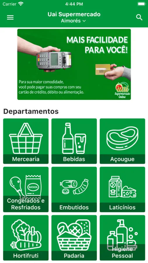 No App do Uai Supermercado você encontra os principais produtos de nossa loja, como itens de mercearia, higiene pessoal, limpeza, açougue, hortifruti e muito mais!