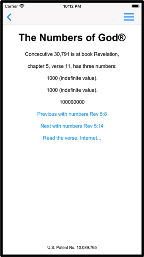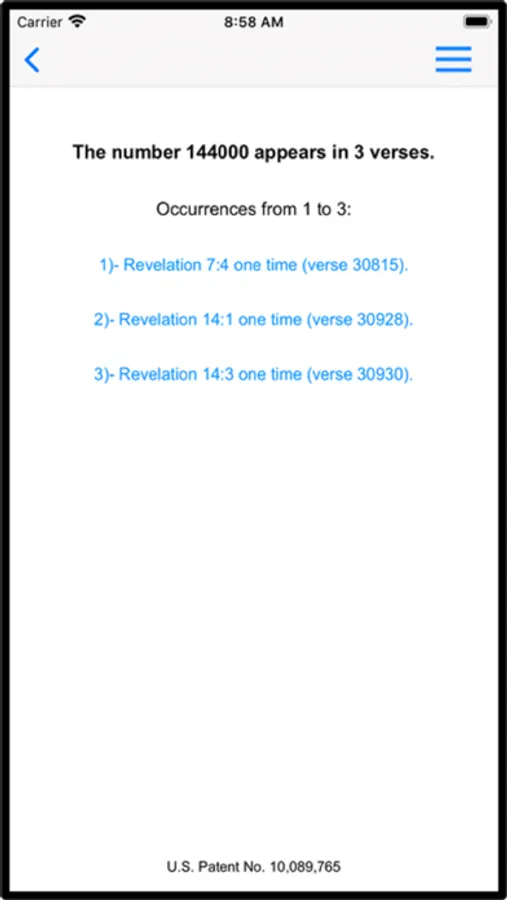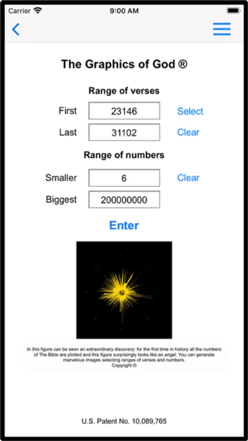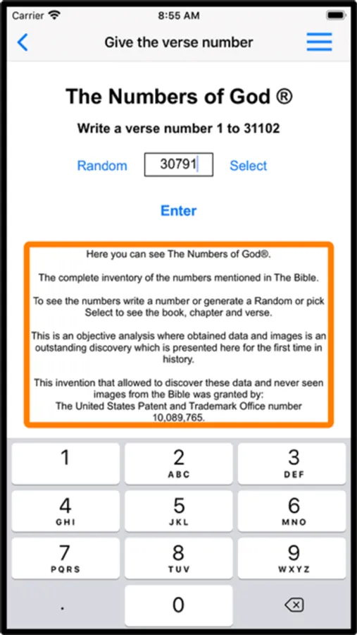 This software is an invention which was granted with the patent number 10,089,765 by The United States Patent and Trademark Office (USPTO). By means of the tools of this software it is possible to locate all the numbers mentioned in the Bible, have statistics, amazing data and never seen images. US Patent Office considered that this software isn´t only a useful tool to analyze The Bible but a novelty worldwide.