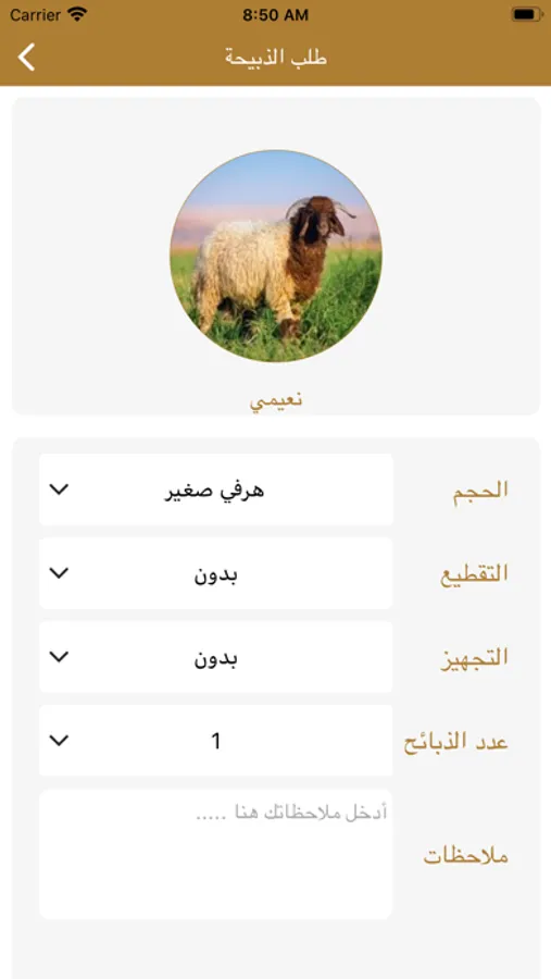 تطبيق الركن المميز للذبائح لبيع كافة انواع اللحوم الطازجة ... يمكنم طلب جميع انواع الذبائح ( النعيمي و النجدي و التيوس و الحري الهرفي و الحاشي ) تحت الاشراف الطبي مع تقطيعه كما ترغب و توصيله الى باب بيتك بسيارات مبرده و باسرع وقت ممكن في كافة مدن المنطقة الشرقيه ( الدمام و الخبر و القطيف و ام الساهك ... الخ) و اختيار نوع التغليف الذي يناسبك ... رضائكم غايتنا ...