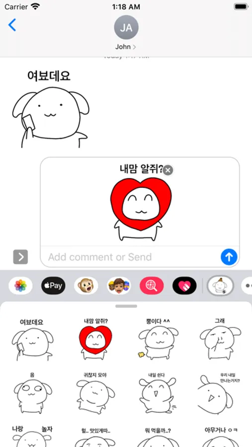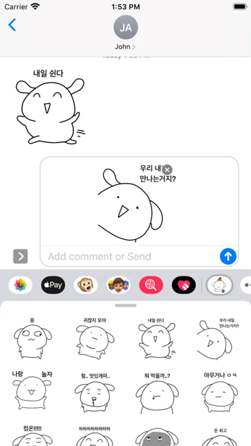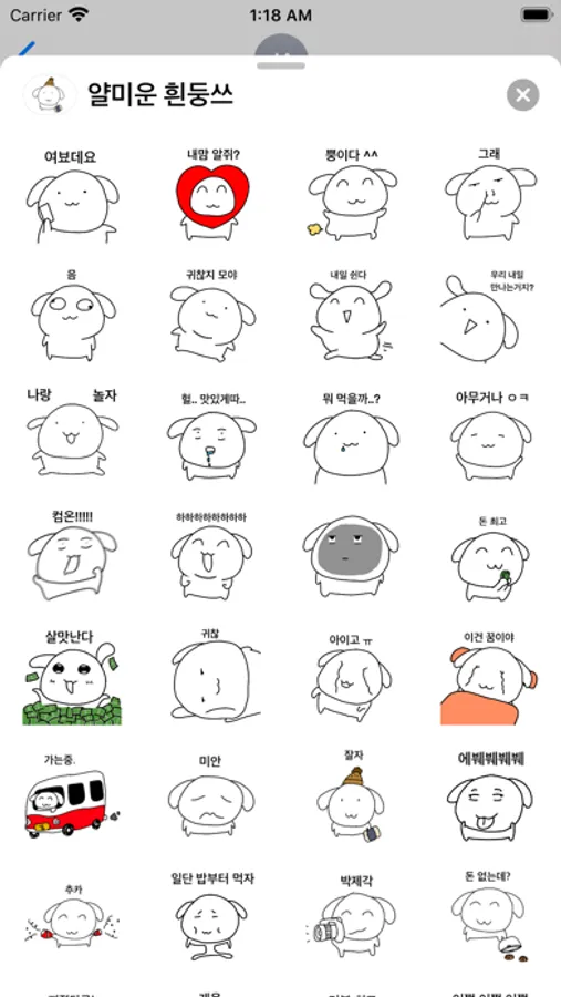 재미있는 표현을 하는 흰둥쓰와 함께 iMessage 스티커로 채팅하고 다양한 표현하세요.