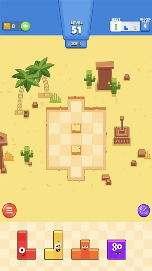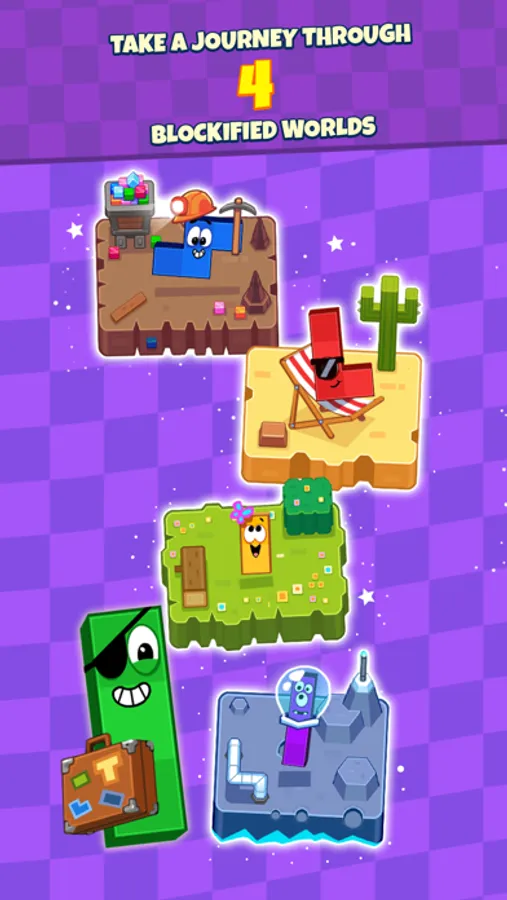 Test your intelligence to the limit by beating the 200th level. There are four beautiful blockified worlds including Forest, Desert, Cave, and Space. As well there up to 18 quirky block pieces joining you on a great puzzle-solving journey!