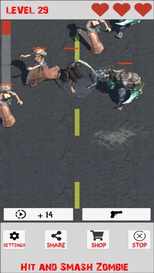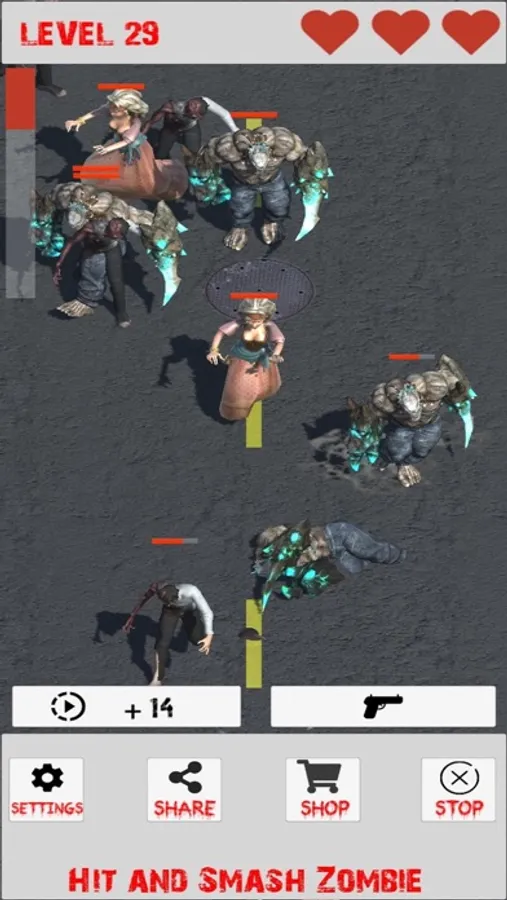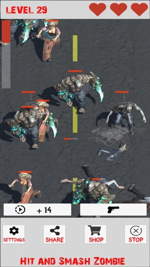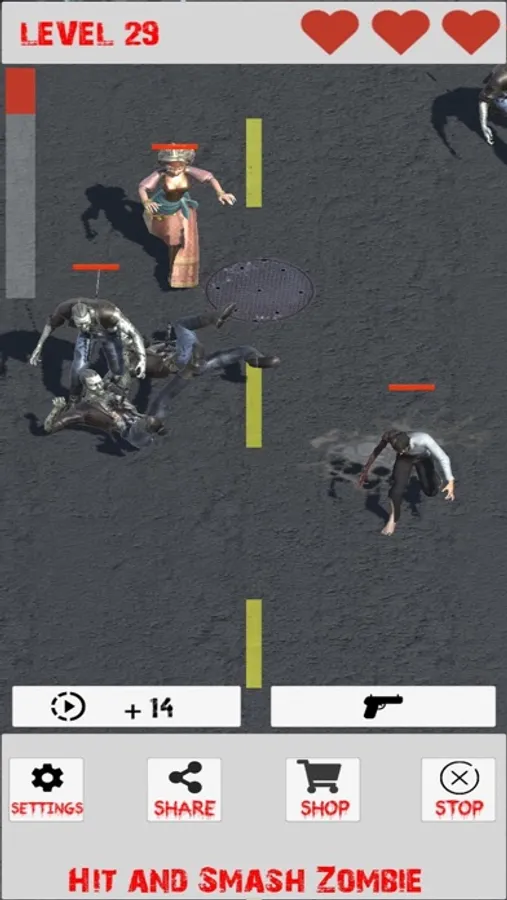 Kill zombies to protect civilians. Zombies falling on the ground can get up again. So you have to be careful. Zombies will be faster in some levels. When the zombies get too fast, you can use the slow down button. There are multiple levels and each level only gets harder!