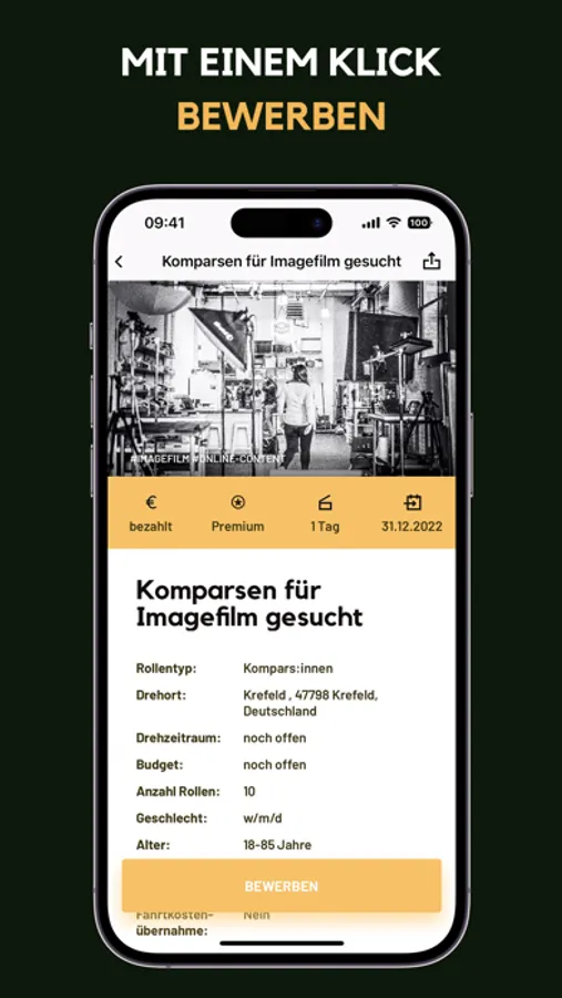Sichere dir jetzt den schnellsten und einfachsten Zugang zu tausenden von Jobs in der Medienbranche mit der innovativen CAST ME App! Egal, ob du Schauspieler, Kleindarsteller, Model oder Komparse bist, mit tausenden von Jobangeboten aus der Medienbranche im deutschsprachigen Raum bringt dich CAST ME schnell und einfach auf die große Leinwand.