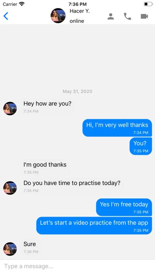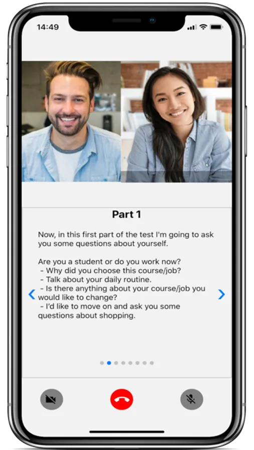 You can connect with new people, send messages to them and you can make video or audio calls with other people. During your call you will get practise questions. This will help you to speak on a specific topic. On every call you will get a different topic.