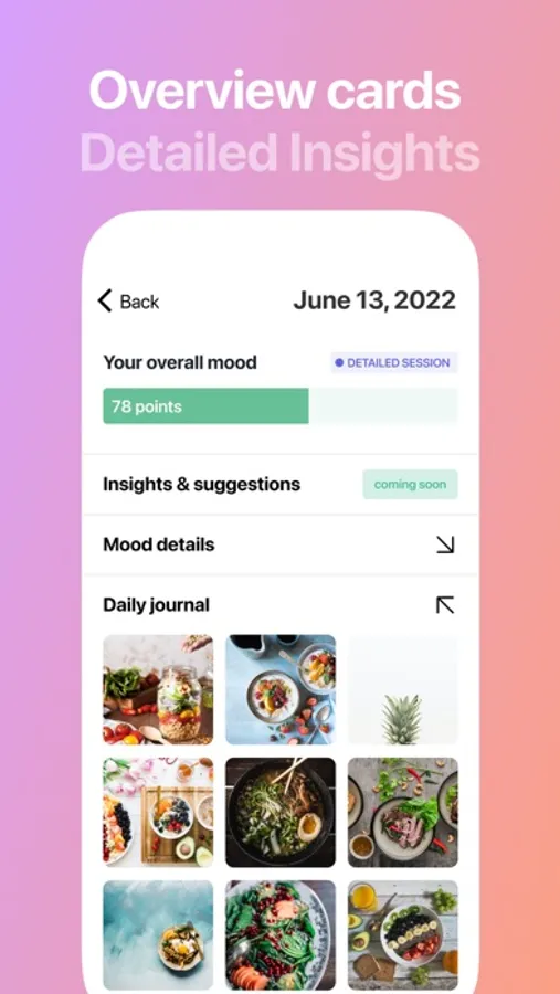 Track your mood and write a short journal entry, you can add photos to your entries. Think of it as an Old School diary. The recorded moods and sessions will be easily accessible in the history and journal tab. You can filter your journal based on score, to help you do more in-depth analysis of your negative and positive days. It will help you find patterns and become more self-aware.