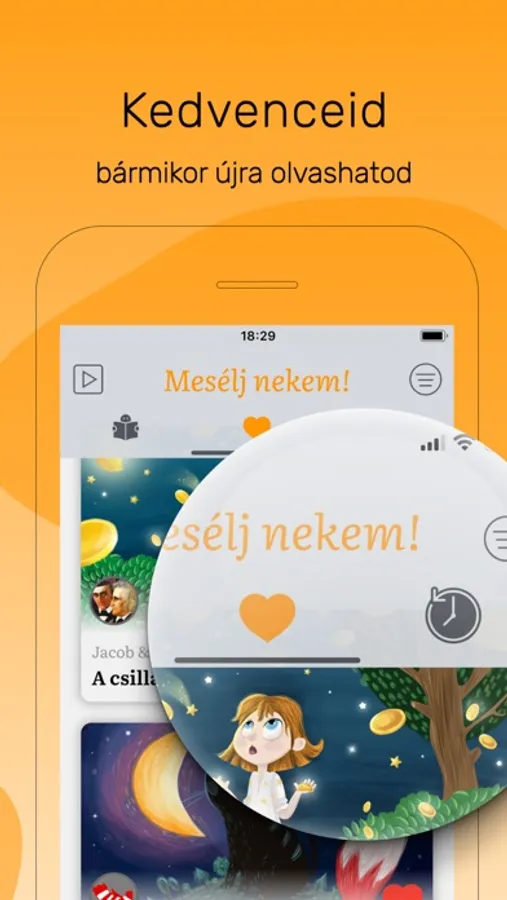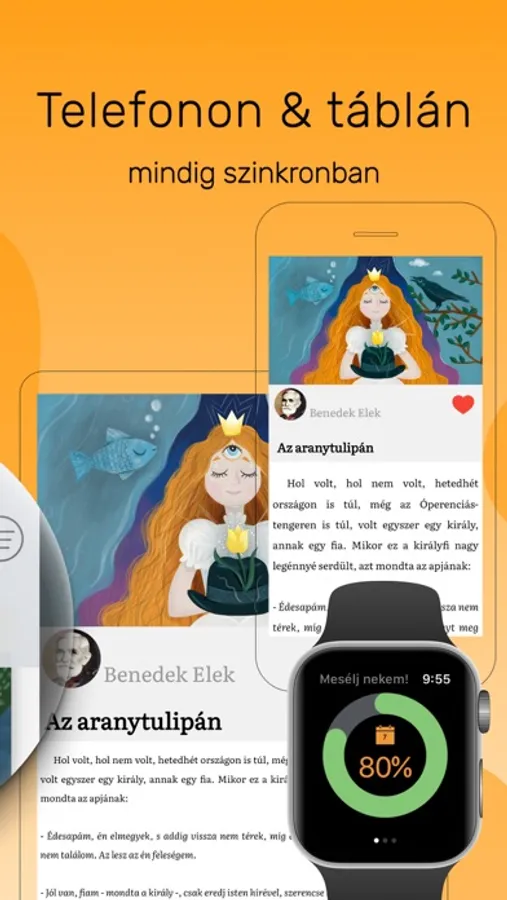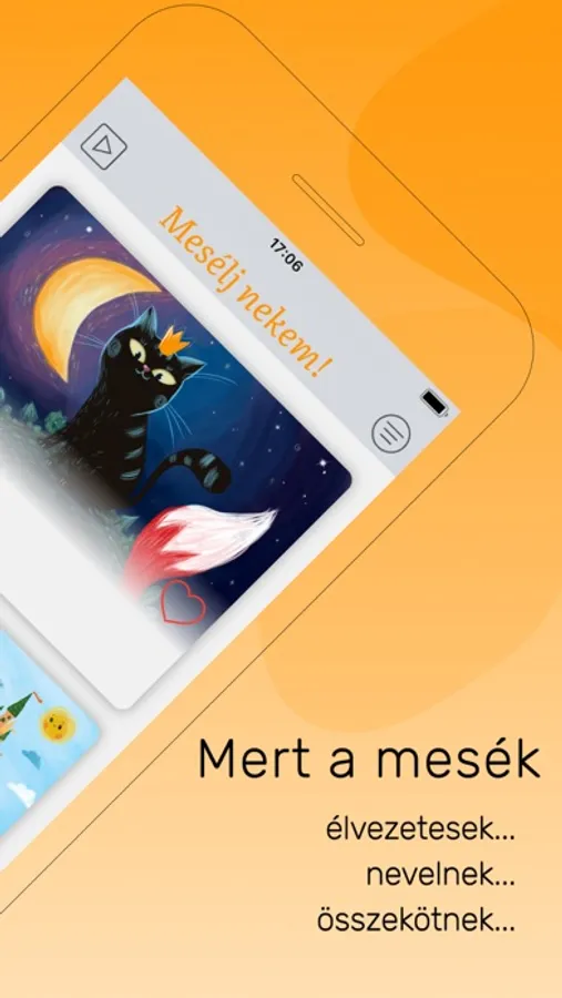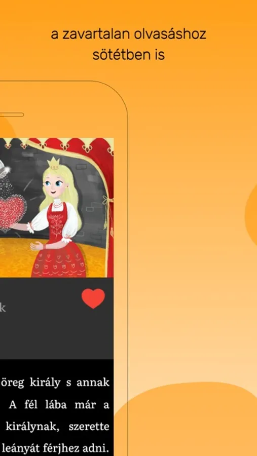 A meséket olvashatod iPhonon, iPadon. Kedvenceidet listára veheted, hogy azok mindig kéznél legyenek. Beállíthatod az olvasáshoz ideális betűméretet, sötét háttérszínt, hogy semmi se zavarja az esti meseolvasást.