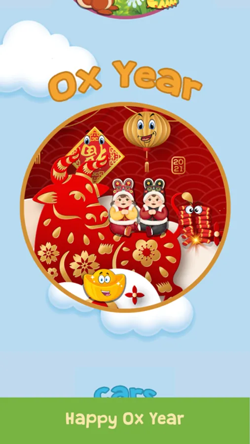 - Ox Year Theme: blessing symbol, firecrackers, gold, kids, lantern, paper ox