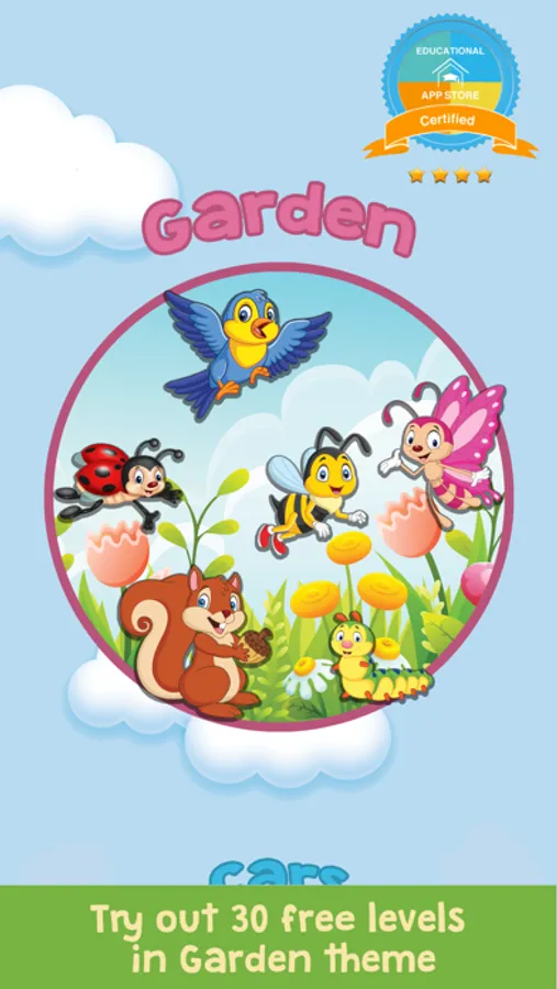 - Garden Theme: bee, bluebird, butterfly, caterpillar, ladybug and squirrel.
