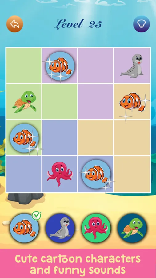 Cute Sudoku is particularly designed for young children in consideration of their proper developmental stages, emphasizing fun, interactions and early logic development. Children from as young as 5 years old to school-age will find fun, confidence and rewarding when they realize that they can solve so many puzzles without help. Cute Sudoku is also a good learning school for adult beginners, or even brain teasers for adults who want to solve all puzzles without hints!