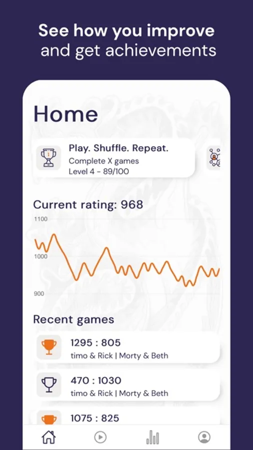 Whether you are a beginner or a tichu veteran: Tichu Stats provides you with your personal stats with everything that goes with it: