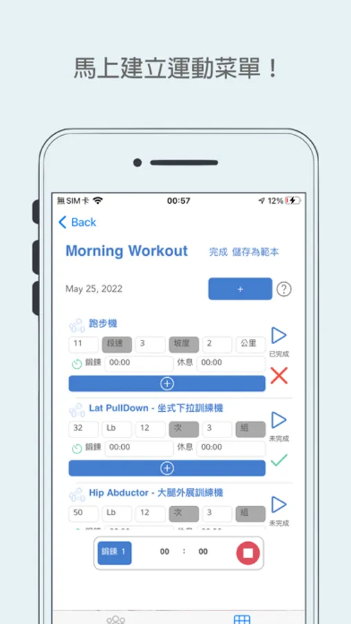 App 亦提供運動記錄功能,隨時紀錄運動菜單!
