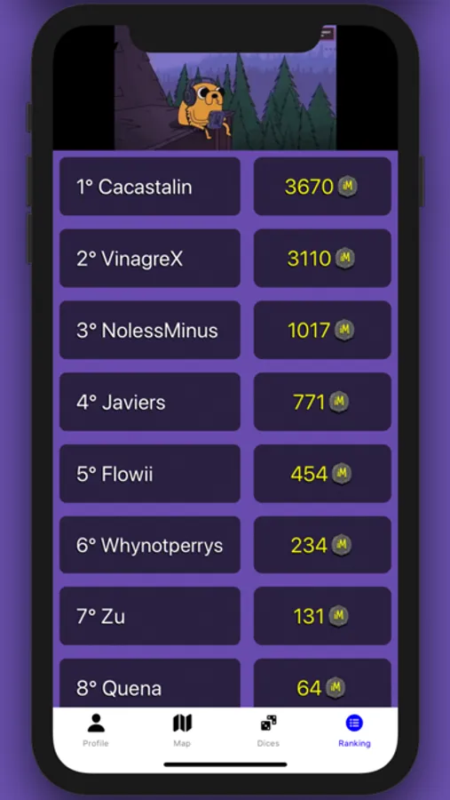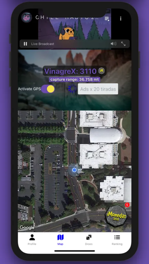 En el "Mapa" l@s usuari@s pueden mostrar (tirar) una cierta cantidad de imonedas de distinto valor dispuestas de forma aleatoria en un mapa acotado y centrado en su ubicación. Para capturar estas monedas es necesario tocarla y desplazarse hasta dentro del rango de captura, el cual depende del nivel del jugador.