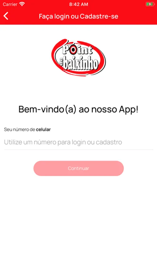 - Caso seja o seu primeiro pedido no Point do Baixinho, precisará fazer um rápido cadastro