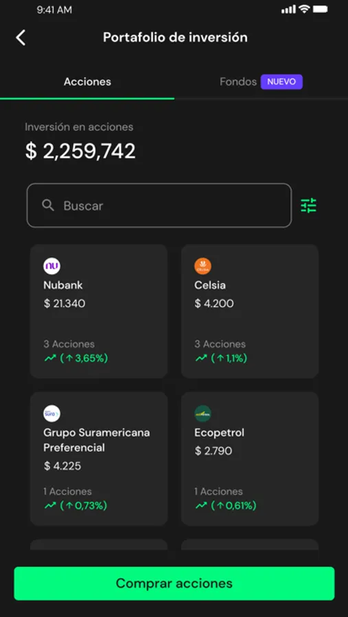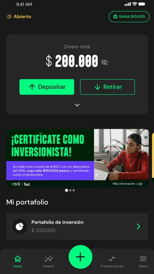 ¿Alguna vez has querido comprar una acción local y extranjera y no has podido? trii es la primera aplicación en Colombia, Perú y Chile que te permite invertir en la acción que tu quieras de la Bolsa de Valores. Todo pasa en tu celular, abre tu cuenta, valida tu identidad, crea tu perfil de riesgo, recarga tu cuenta, compra acciones y retira tus beneficios sin moverte de donde estés.