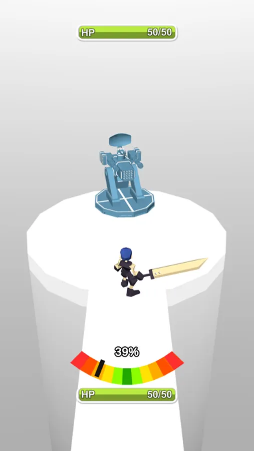 Tap and hold to walk, wait until you get a green score to slash the enemy!