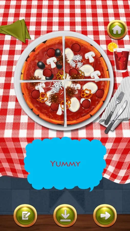 Into the oven it goes and now we wait till it's ready. But you can't serve it just yet, you haven't laid the table! Make your pizzeria look fantastic with beautiful tablecloths, stylish origami napkins, mouth-watering juices and cocktails.