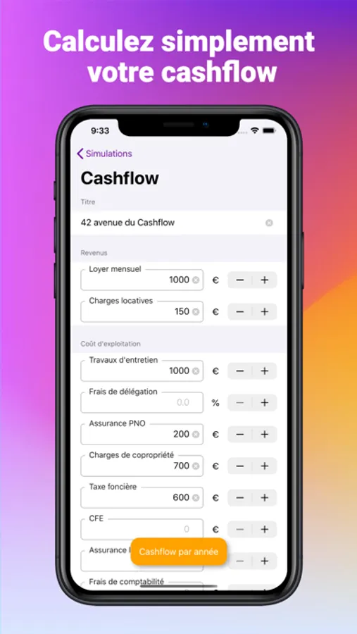 Avec Immo Cashflow, rentrez vos données et regardez instantanément le cashflow que vous pouvez obtenir !