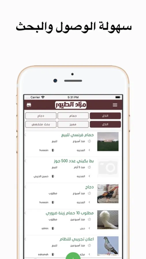 مزاد وعروض لجميع انواع الحمام اللاحم والسلفر والفرنسي والزاجل والزينة ولجميع انواع الدجاج البراهما والفيومي والبلدي والشامو والسبرايت والتركي والفرنسي والباكستاني و لجميع انواع الطيور والصقور والطيور البريه ولجميع انواع الدواجن الأخرى كالبط و الأوز والنعام.